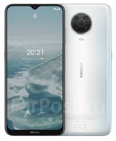Смартфон Nokia G20 выполнен в прочном поликарбонатном корпусе, устойчивом к повреждениям. На дисплее 6.5 дюйма IPS с разрешением 1600x720 пикселей и соотношением сторон 20:9 отображается реалистичная картинка. Тыловая (48+5+2+2 Мп) и фронтальная (8 Мп) камеры способны запечатлевать снимки с хорошими показателями детализации и красочности в любых условиях. Среди прочих особенностей отмечаются сканер отпечатков пальцев, проводные и беспроводные коммуникации, ряд датчиков и продолжительная автономность на основе аккумулятора 5050 мА*ч.